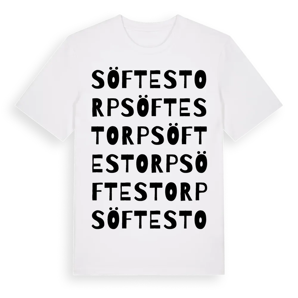 Söftestorp ordlek t-shirt är inspirerad av byn Söftestorp i Kronobergs län, Sverige. Tröjan är designad för dig som har en speciell koppling till platsen – oavsett om du bor här, har rötterna här eller bara älskar Söftestorp.