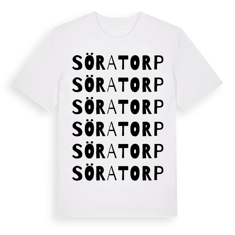 En ordlek byggd på Söratorps namn. Subtilt och klurig – ett motiv som bara de som verkligen känner platsen fullt ut förstår. Premium bomull, unisex – från Söratorp i Kronobergs län.