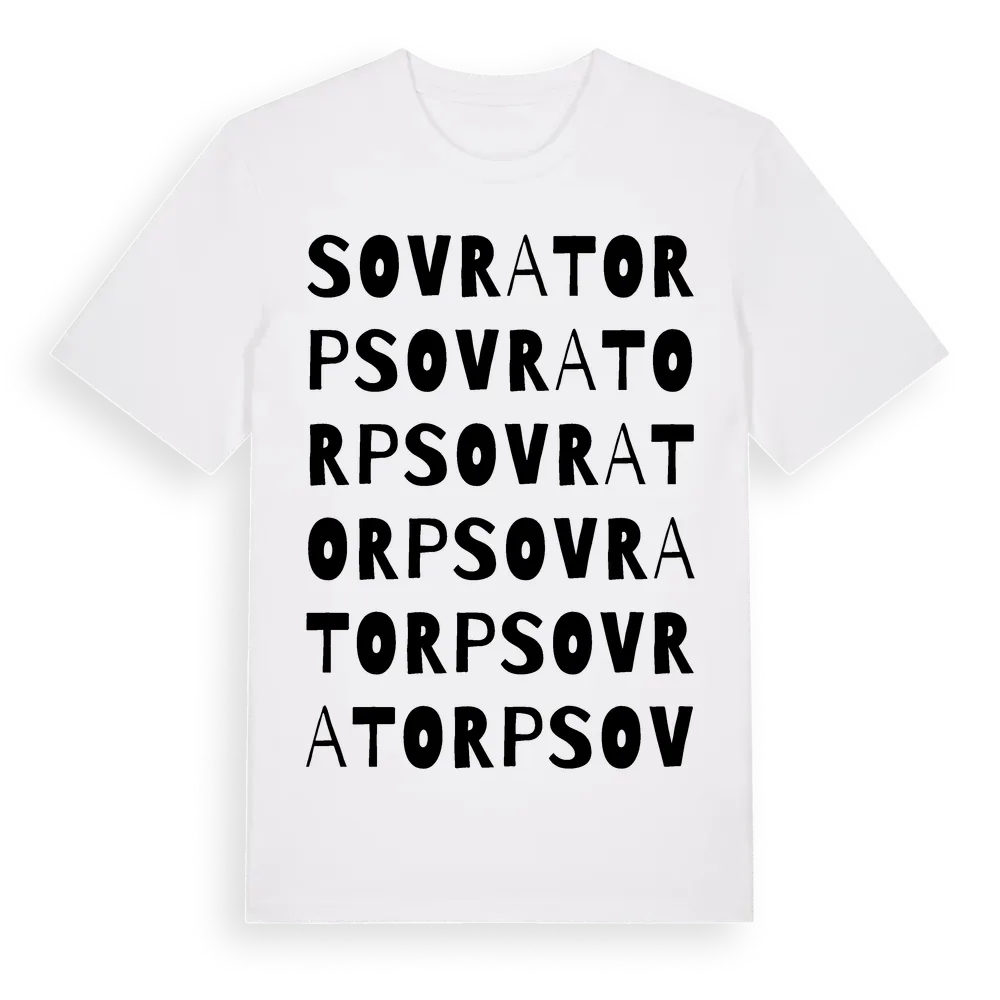 Sovratorp ordlek t-shirt är inspirerad av Sovratorp i Kronobergs län, Sverige. Tröjan är designad för dig som har en speciell koppling till platsen – oavsett om du bor här, har rötterna här eller bara älskar Sovratorp.