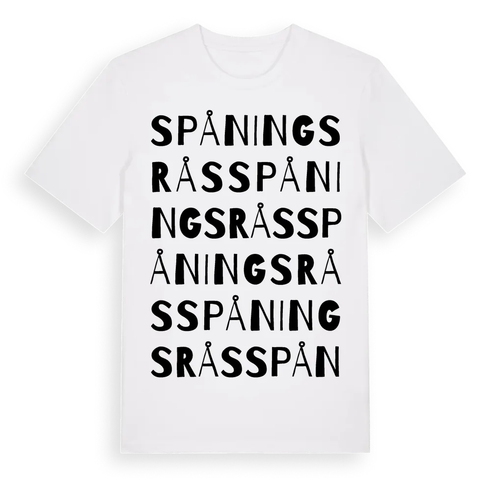 Spåningsrås ordlek t-shirt är inspirerad av Spåningsrås i Kronobergs län, Sverige. Tröjan är designad för dig som har en speciell koppling till platsen – oavsett om du bor här, har rötterna här eller bara älskar Spåningsrås.