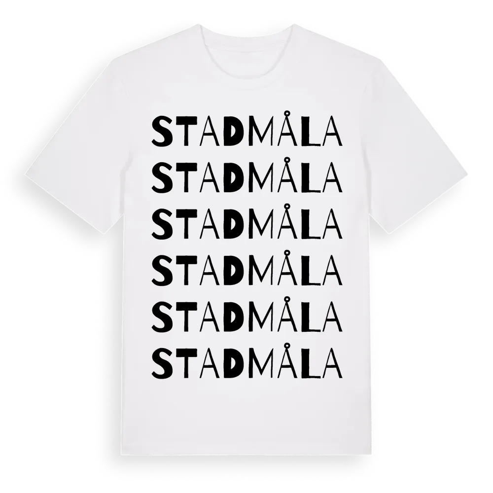 Stadmåla ordlek t-shirt är inspirerad av Stadmåla i Kronobergs län, Sverige. Tröjan är designad för dig som har en speciell koppling till platsen – oavsett om du bor här, har rötterna här eller bara älskar Stadmåla.