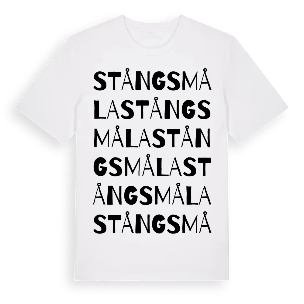 Stångsmåla ordlek t-shirt är inspirerad av byn Stångsmåla i Kronobergs län, Sverige. Tröjan är designad för dig som har en speciell koppling till platsen – oavsett om du bor här, har rötterna här eller bara älskar Stångsmåla.