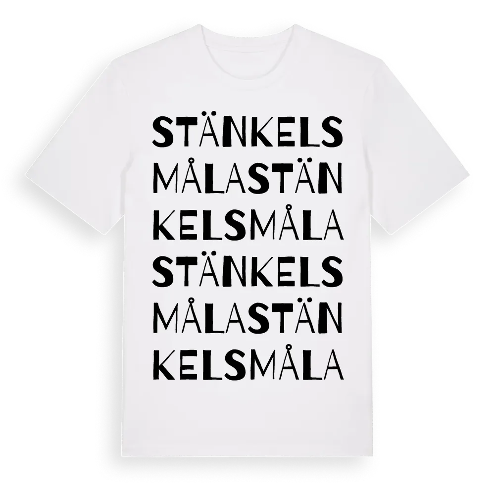 Stänkelsmåla ordlek t-shirt är inspirerad av byn Stänkelsmåla i Kronobergs län, Sverige. Tröjan är designad för dig som har en speciell koppling till platsen – oavsett om du bor här, har rötterna här eller bara älskar Stänkelsmåla.