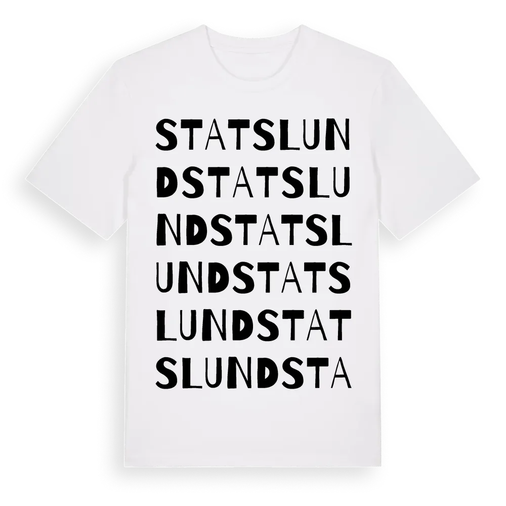 Statslund ordlek t-shirt är inspirerad av Statslund i Kronobergs län, Sverige. Tröjan är designad för dig som har en speciell koppling till platsen – oavsett om du bor här, har rötterna här eller bara älskar Statslund.