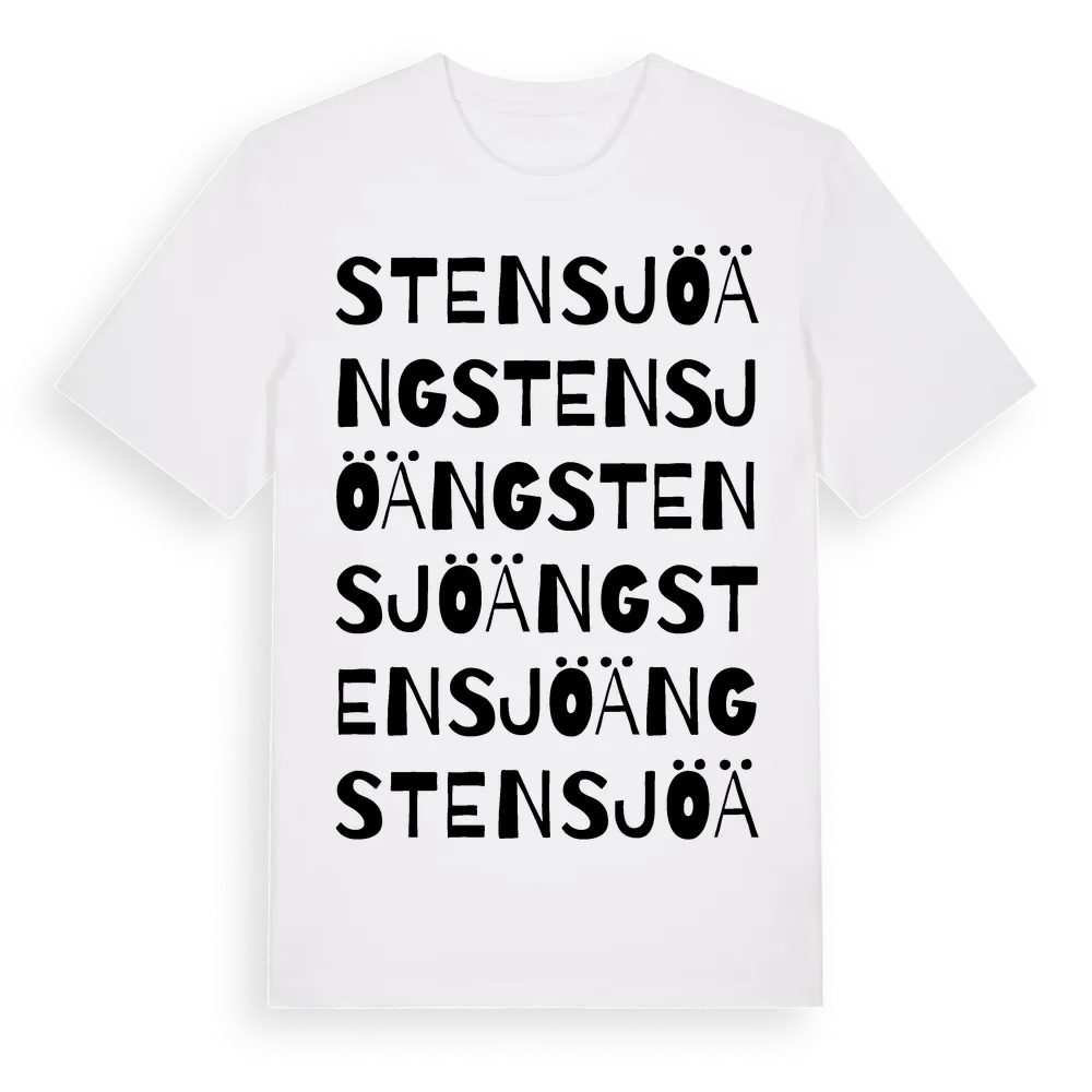 Stensjöäng ordlek t-shirt är inspirerad av Stensjöäng i Kronobergs län, Sverige. Tröjan är designad för dig som har en speciell koppling till platsen – oavsett om du bor här, har rötterna här eller bara älskar Stensjöäng.