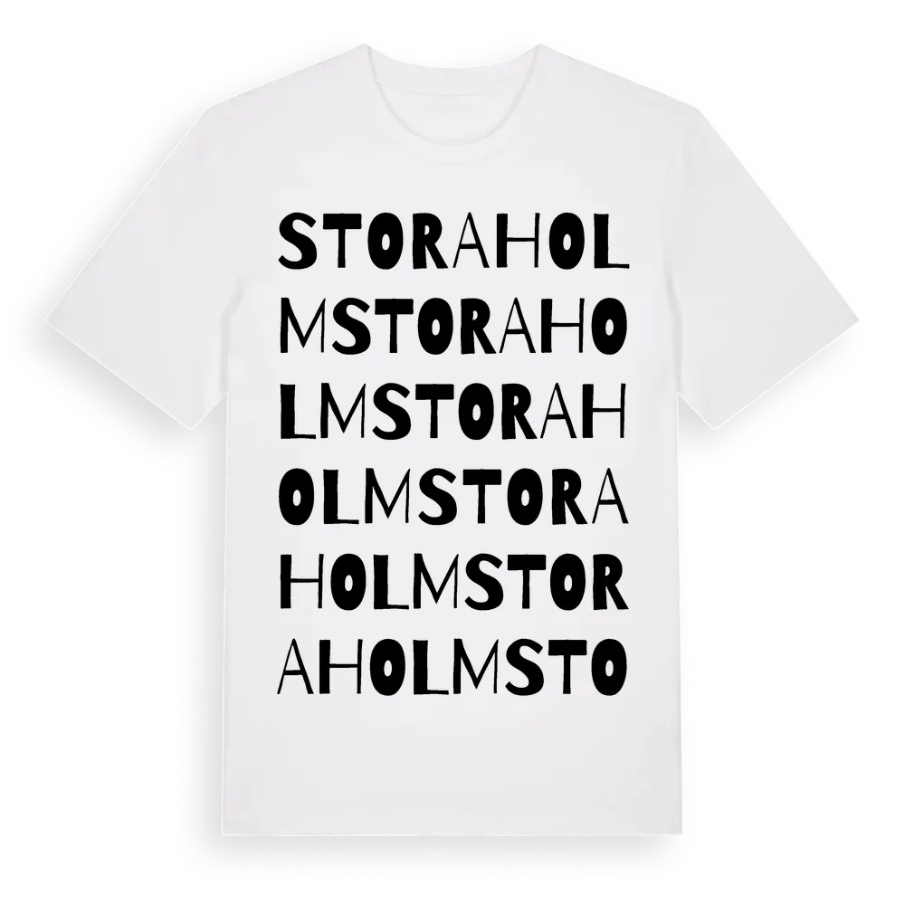 Storaholm ordlek t-shirt är inspirerad av Storaholm i Kronobergs län, Sverige. Tröjan är designad för dig som har en speciell koppling till platsen – oavsett om du bor här, har rötterna här eller bara älskar Storaholm.