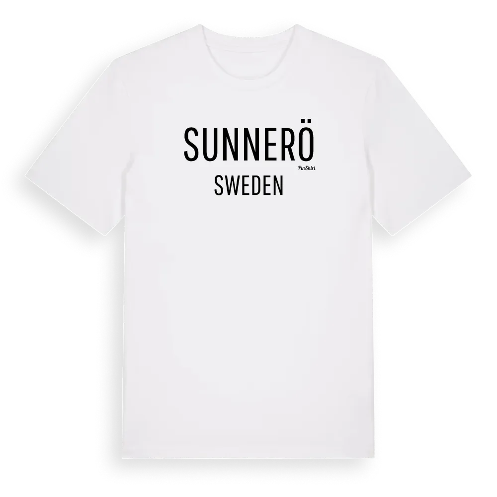 Sunnerö i Sverige – ett rakt och tydligt utrop om var du hör hemma. Inget mer behövs. Premium bomull, unisex – från byn Sunnerö i Kronobergs län.