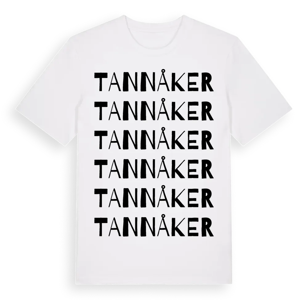 Tannåker ordlek t-shirt är inspirerad av byn Tannåker i Kronobergs län, Sverige. Tröjan är designad för dig som har en speciell koppling till platsen – oavsett om du bor här, har rötterna här eller bara älskar Tannåker.