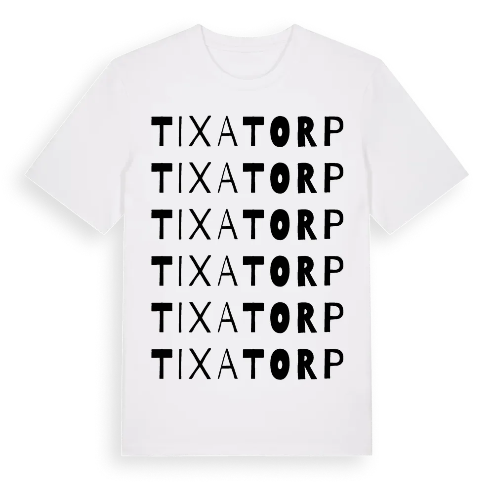 Tixatorp ordlek t-shirt är inspirerad av Tixatorp i Kronobergs län, Sverige. Tröjan är designad för dig som har en speciell koppling till platsen – oavsett om du bor här, har rötterna här eller bara älskar Tixatorp.