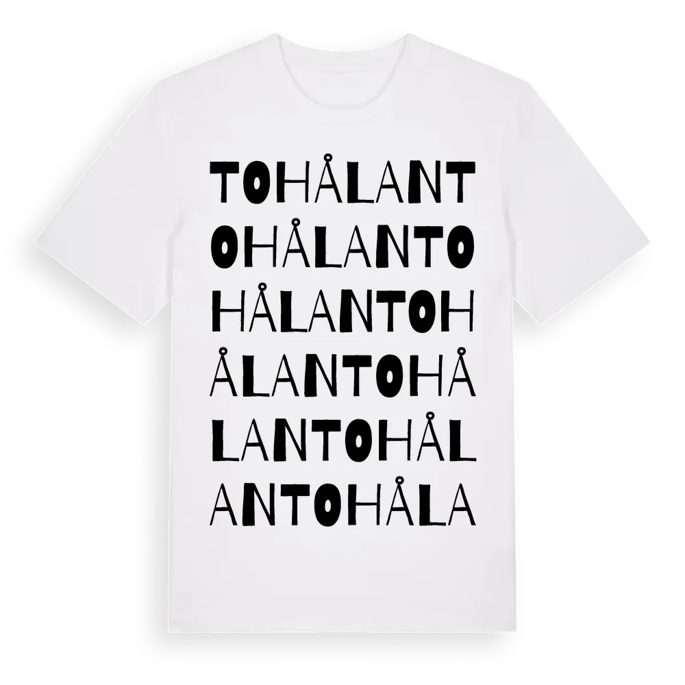 Tohålan ordlek t-shirt är inspirerad av Tohålan i Kronobergs län, Sverige. Tröjan är designad för dig som har en speciell koppling till platsen – oavsett om du bor här, har rötterna här eller bara älskar Tohålan.