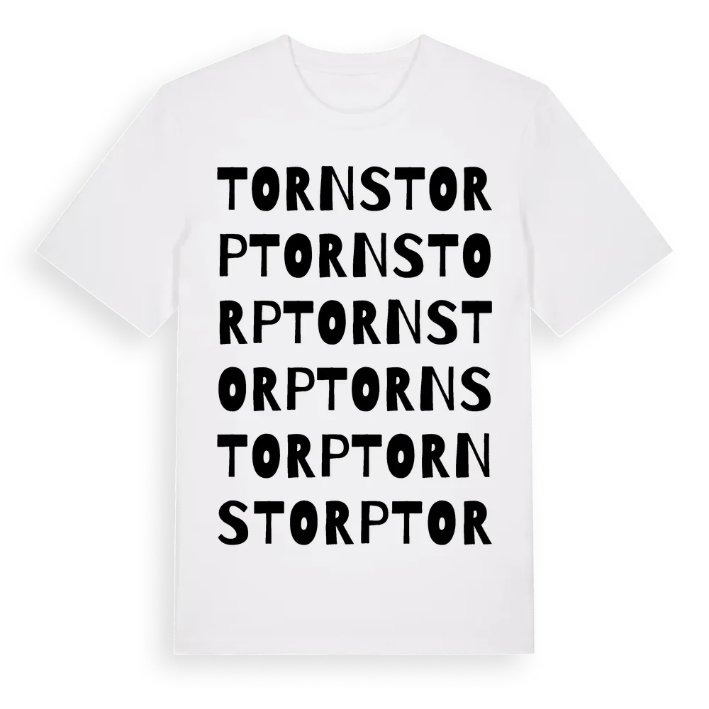 Tornstorp ordlek t-shirt är inspirerad av Tornstorp i Kronobergs län, Sverige. Tröjan är designad för dig som har en speciell koppling till platsen – oavsett om du bor här, har rötterna här eller bara älskar Tornstorp.