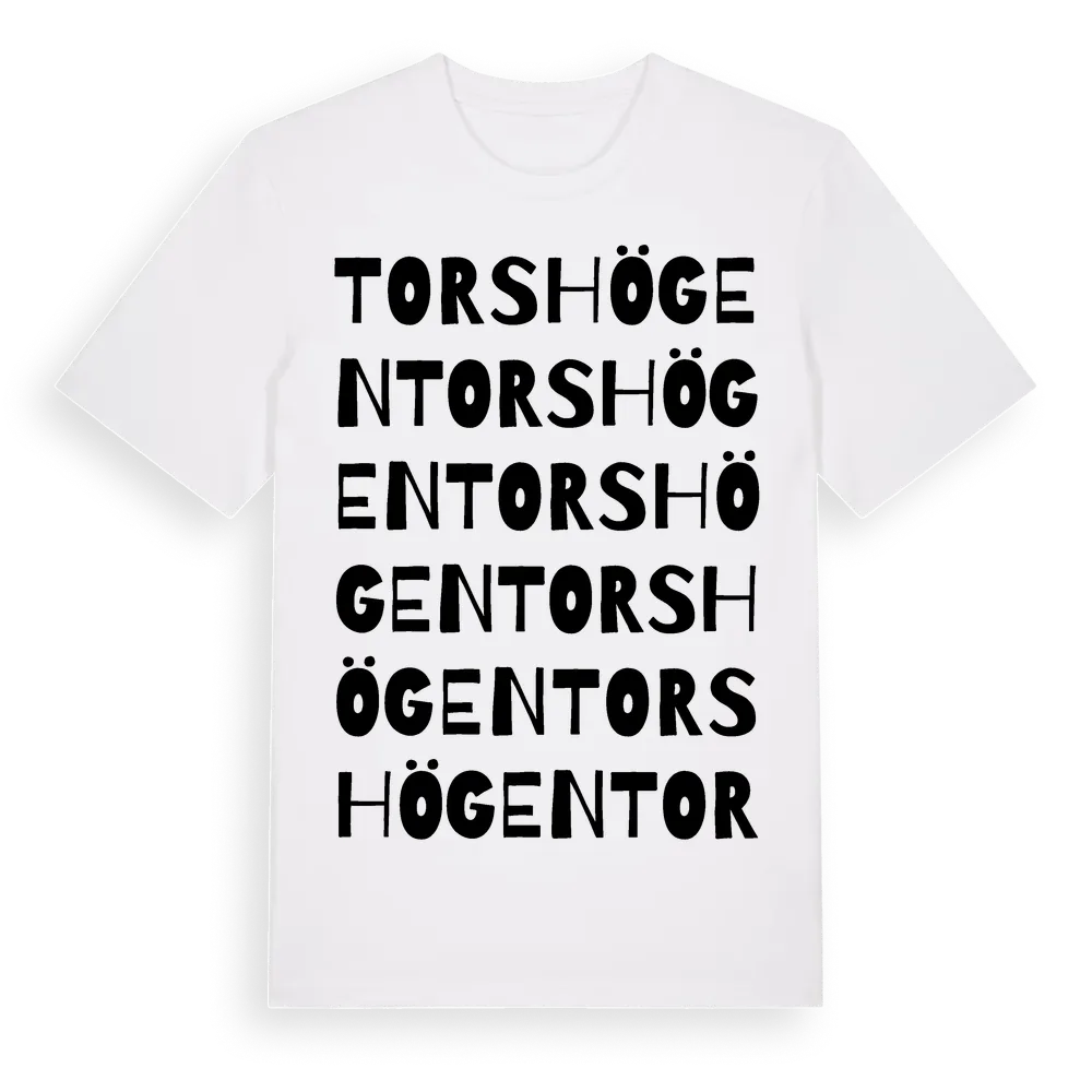Torshögen ordlek t-shirt är inspirerad av Torshögen i Kronobergs län, Sverige. Tröjan är designad för dig som har en speciell koppling till platsen – oavsett om du bor här, har rötterna här eller bara älskar Torshögen.