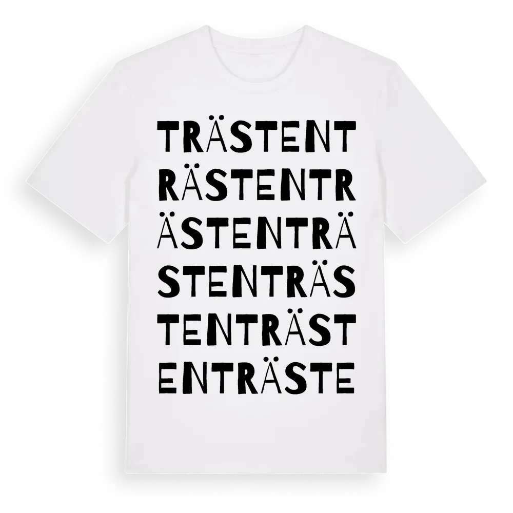 Trästen ordlek t-shirt är inspirerad av byn Trästen i Kronobergs län, Sverige. Tröjan är designad för dig som har en speciell koppling till platsen – oavsett om du bor här, har rötterna här eller bara älskar Trästen.