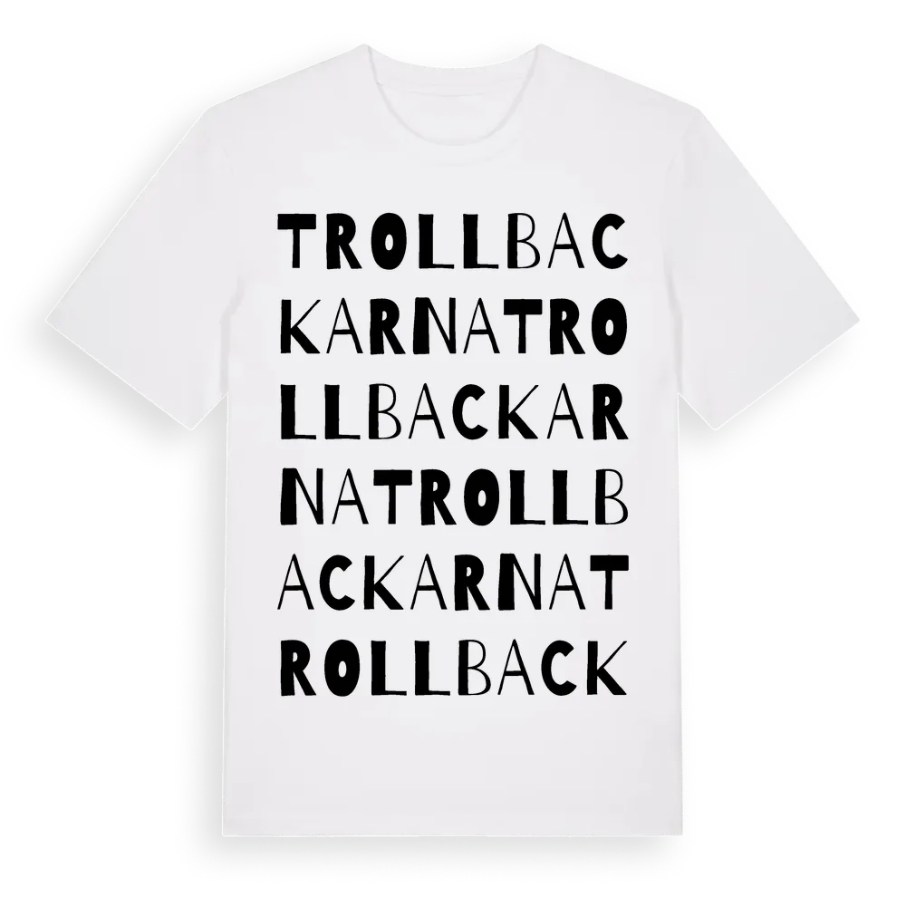 Trollbackarna ordlek t-shirt är inspirerad av Trollbackarna i Kronobergs län, Sverige. Tröjan är designad för dig som har en speciell koppling till platsen – oavsett om du bor här, har rötterna här eller bara älskar Trollbackarna.