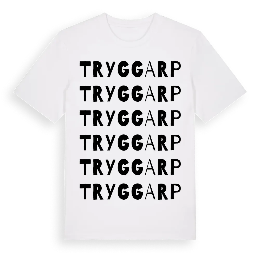 Tryggarp ordlek t-shirt är inspirerad av Tryggarp i Kronobergs län, Sverige. Tröjan är designad för dig som har en speciell koppling till platsen – oavsett om du bor här, har rötterna här eller bara älskar Tryggarp.