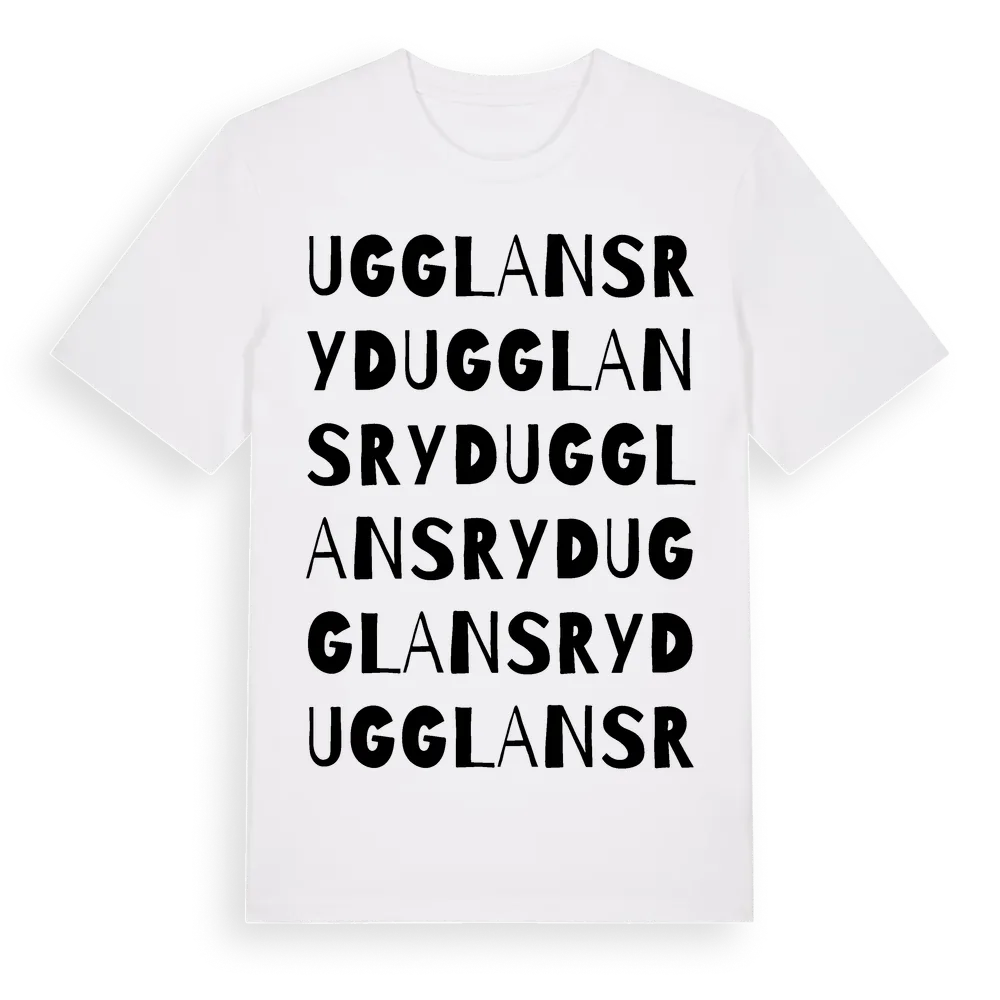 Ugglansryd ordlek t-shirt är inspirerad av byn Ugglansryd i Kronobergs län, Sverige. Tröjan är designad för dig som har en speciell koppling till platsen – oavsett om du bor här, har rötterna här eller bara älskar Ugglansryd.
