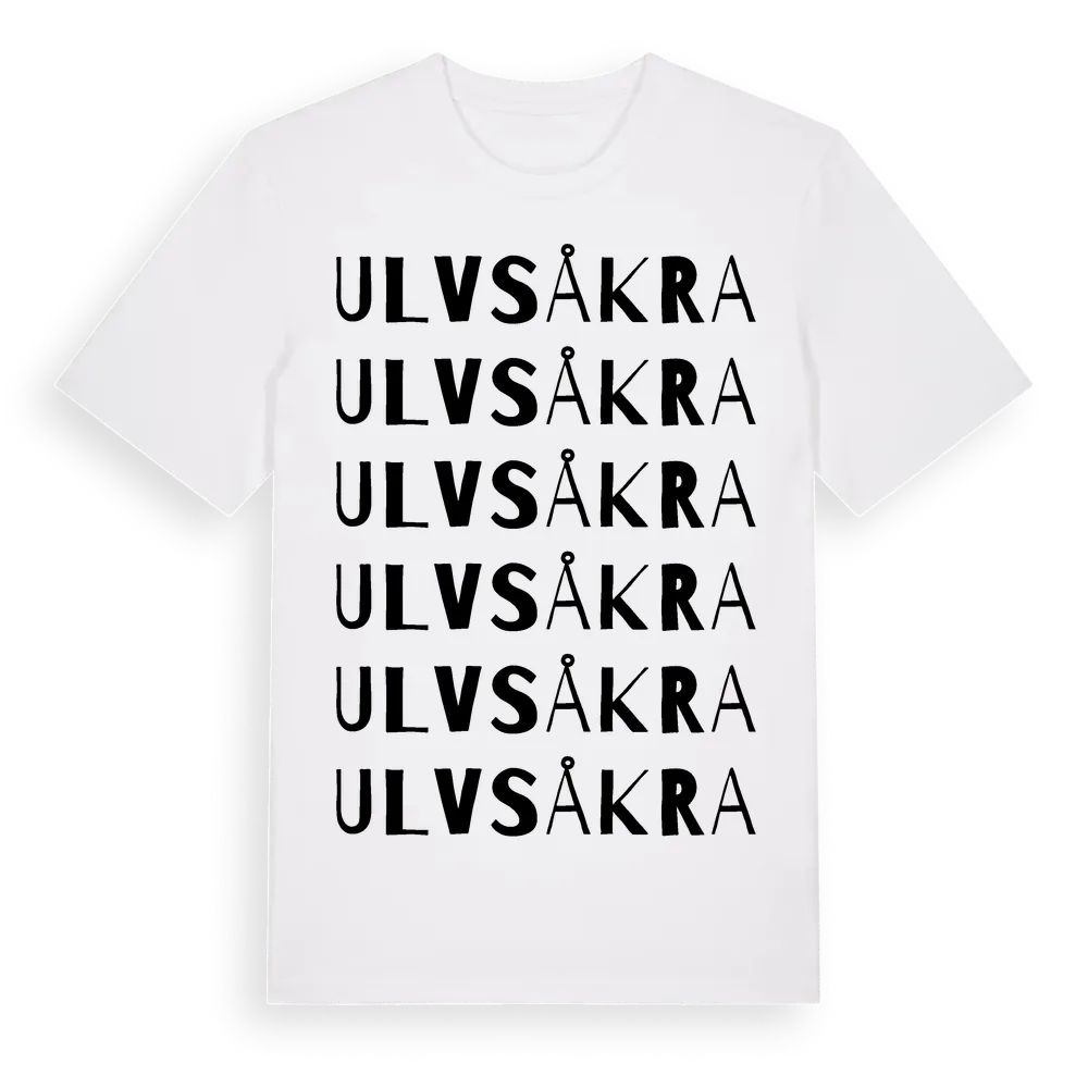 Ulvsåkra ordlek t-shirt är inspirerad av byn Ulvsåkra i Kronobergs län, Sverige. Tröjan är designad för dig som har en speciell koppling till platsen – oavsett om du bor här, har rötterna här eller bara älskar Ulvsåkra.