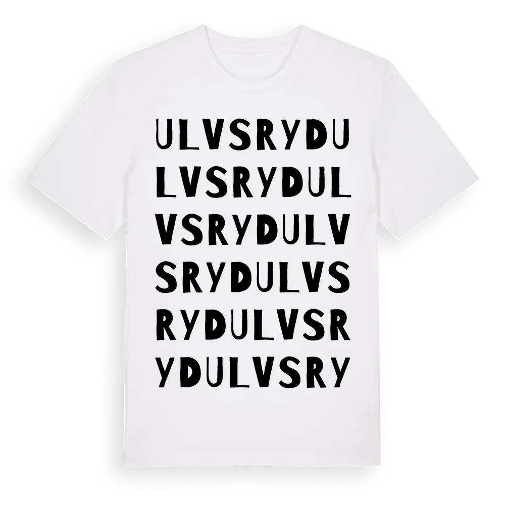 Ulvsryd ordlek t-shirt är inspirerad av byn Ulvsryd i Kronobergs län, Sverige. Tröjan är designad för dig som har en speciell koppling till platsen – oavsett om du bor här, har rötterna här eller bara älskar Ulvsryd.