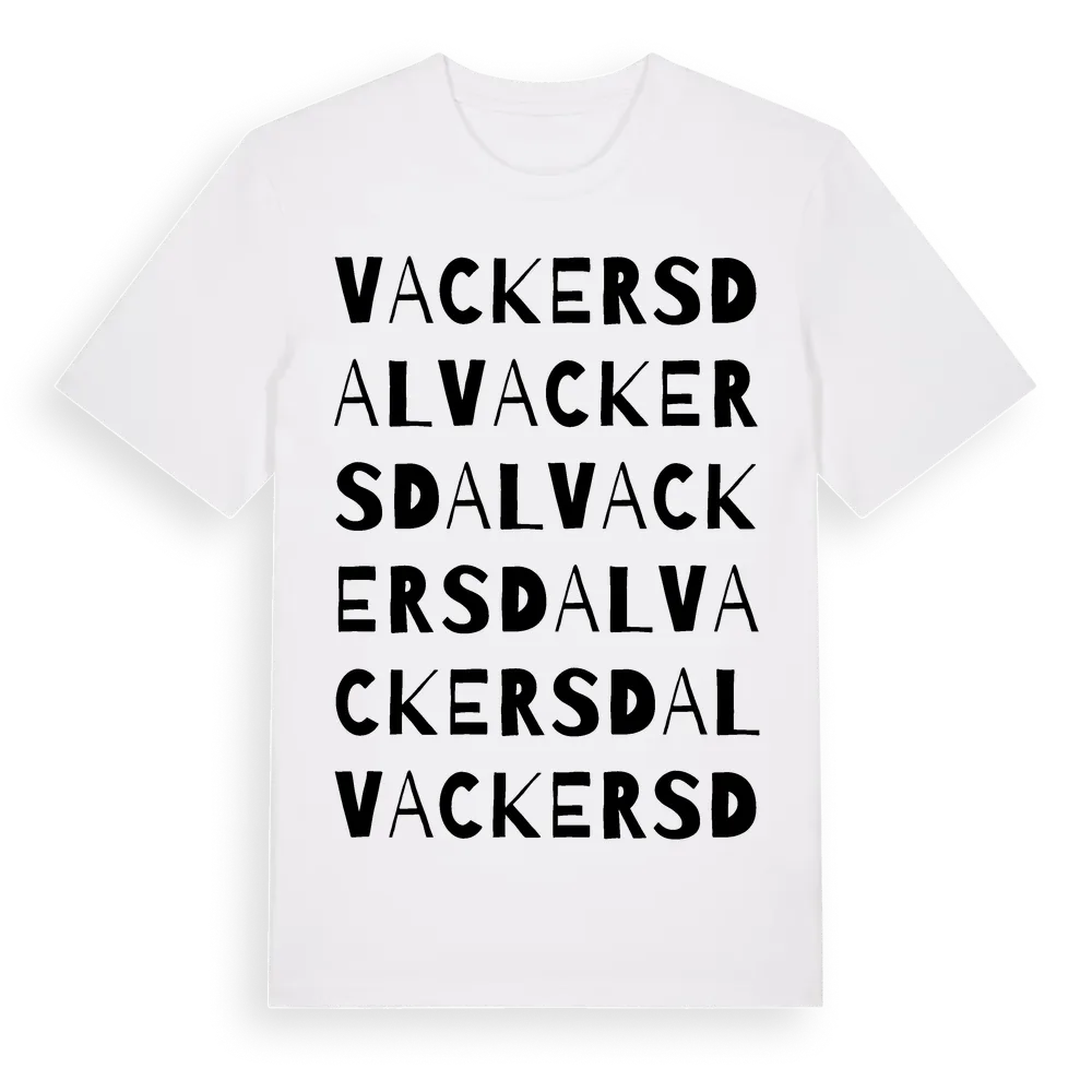 Vackersdal ordlek t-shirt är inspirerad av Vackersdal i Kronobergs län, Sverige. Tröjan är designad för dig som har en speciell koppling till platsen – oavsett om du bor här, har rötterna här eller bara älskar Vackersdal.