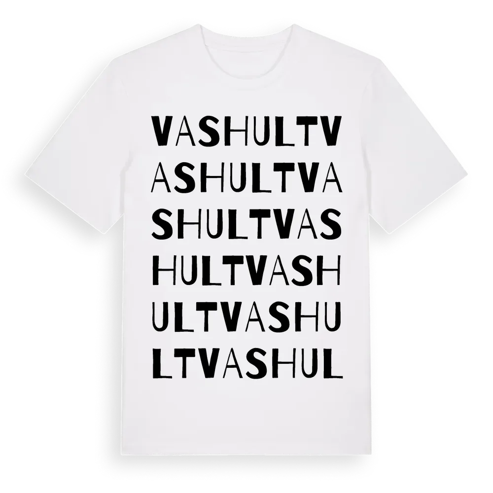 Vashult ordlek t-shirt är inspirerad av byn Vashult i Kronobergs län, Sverige. Tröjan är designad för dig som har en speciell koppling till platsen – oavsett om du bor här, har rötterna här eller bara älskar Vashult.