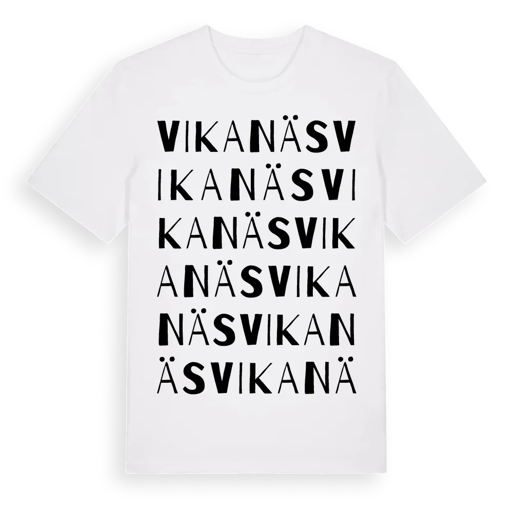 Vikanäs ordlek t-shirt är inspirerad av Vikanäs i Kronobergs län, Sverige. Tröjan är designad för dig som har en speciell koppling till platsen – oavsett om du bor här, har rötterna här eller bara älskar Vikanäs.