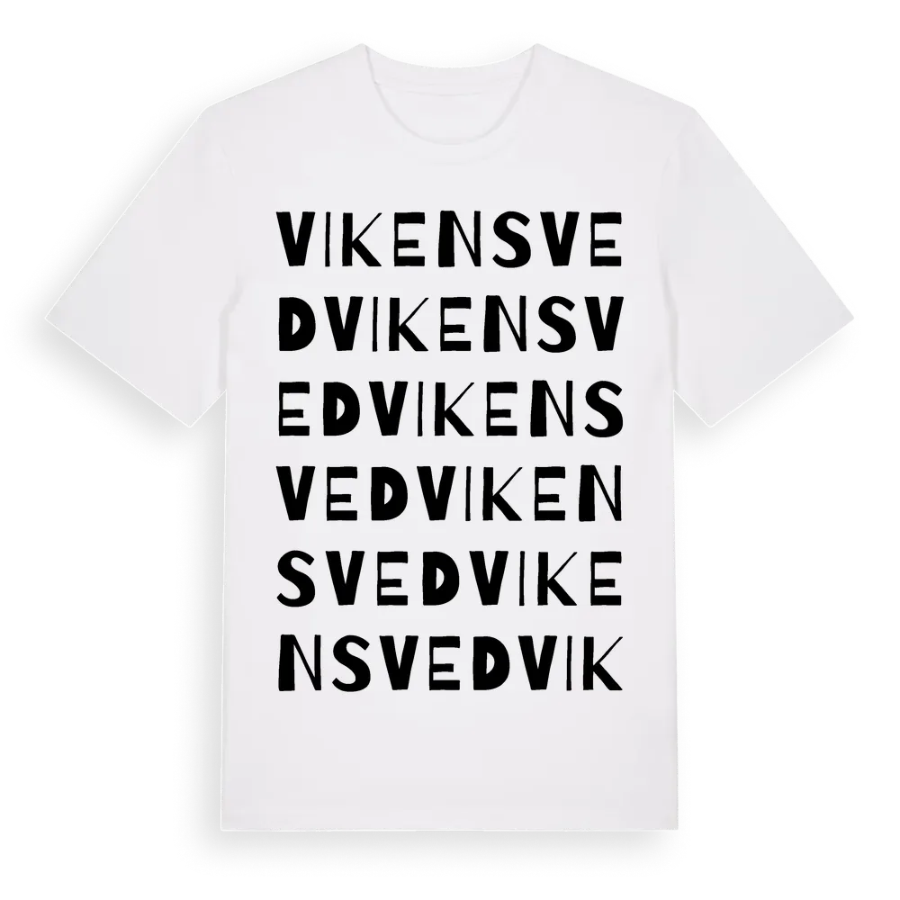 Vikensved ordlek t-shirt är inspirerad av byn Vikensved i Kronobergs län, Sverige. Tröjan är designad för dig som har en speciell koppling till platsen – oavsett om du bor här, har rötterna här eller bara älskar Vikensved.
