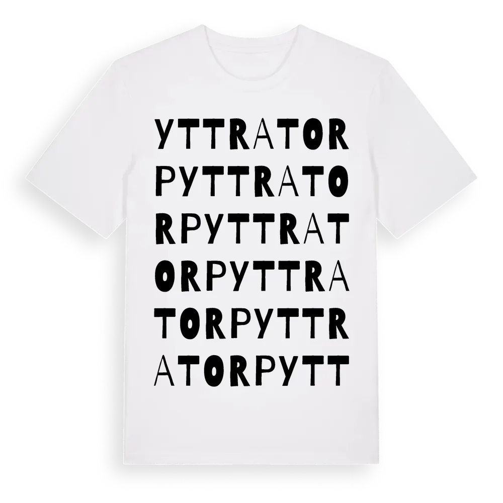 Yttratorp ordlek t-shirt är inspirerad av Yttratorp i Kronobergs län, Sverige. Tröjan är designad för dig som har en speciell koppling till platsen – oavsett om du bor här, har rötterna här eller bara älskar Yttratorp.