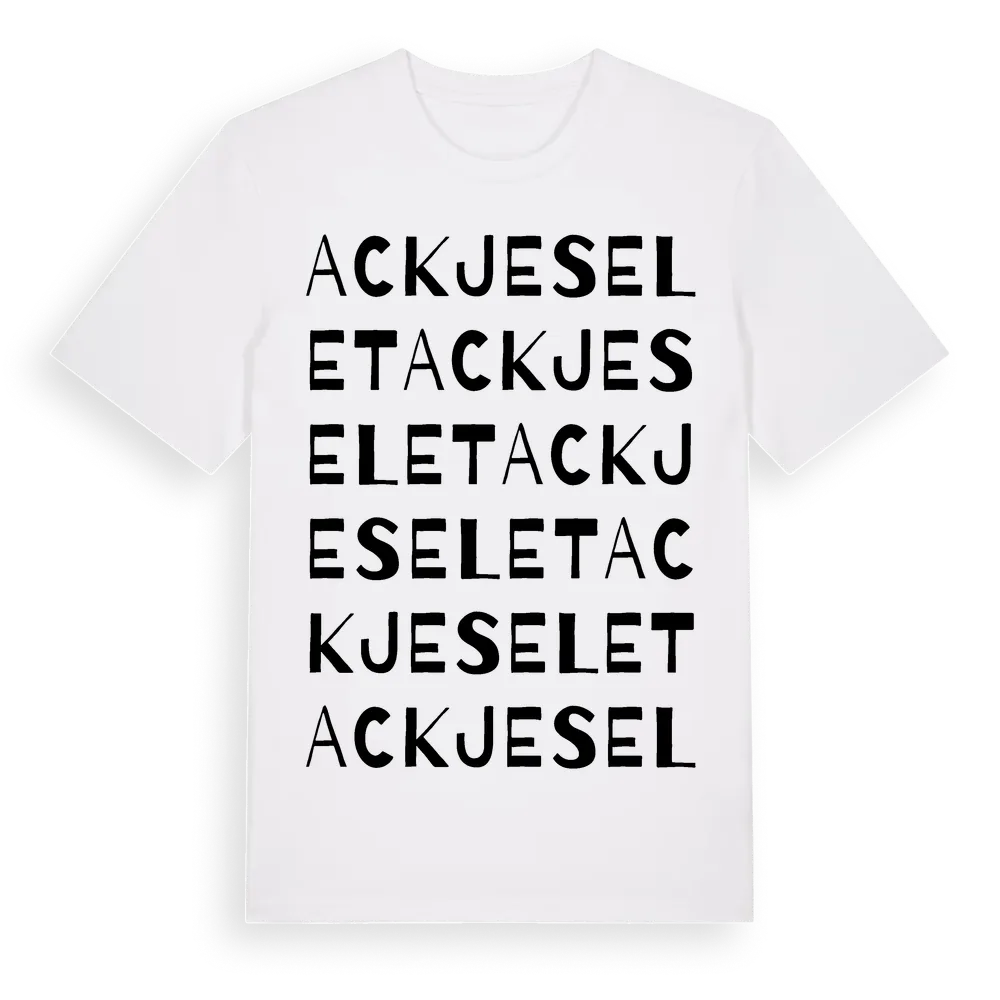 Ackjeselet ordlek t-shirt är inspirerad av Ackjeselet i Norrbottens län, Sverige. Tröjan är designad för dig som har en speciell koppling till platsen – oavsett om du bor här, har rötterna här eller bara älskar Ackjeselet.