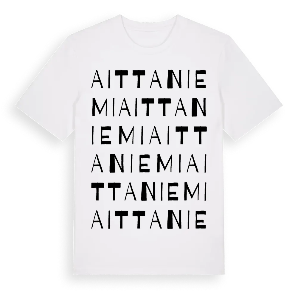 Aittaniemi ordlek t-shirt är inspirerad av Aittaniemi i Norrbottens län, Sverige. Tröjan är designad för dig som har en speciell koppling till platsen – oavsett om du bor här, har rötterna här eller bara älskar Aittaniemi.