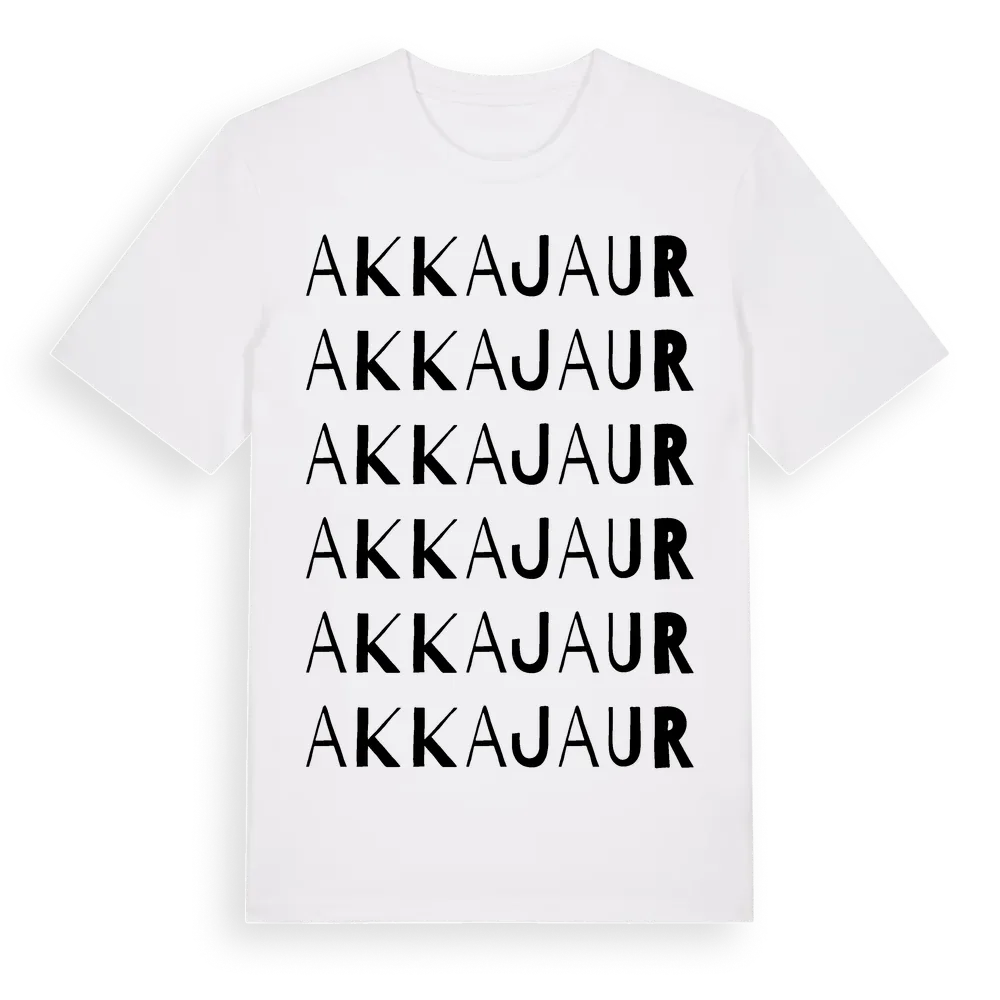 Akkajaur ordlek t-shirt är inspirerad av byn Akkajaur i Norrbottens län, Sverige. Tröjan är designad för dig som har en speciell koppling till platsen – oavsett om du bor här, har rötterna här eller bara älskar Akkajaur.