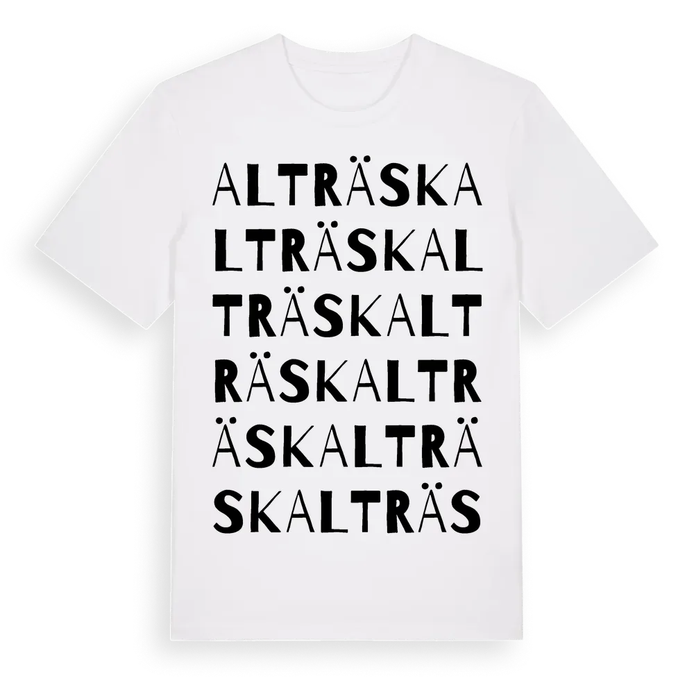 Alträsk ordlek t-shirt är inspirerad av byn Alträsk i Norrbottens län, Sverige. Tröjan är designad för dig som har en speciell koppling till platsen – oavsett om du bor här, har rötterna här eller bara älskar Alträsk.