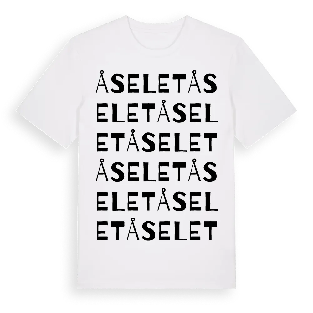 Åselet ordlek t-shirt är inspirerad av byn Åselet i Norrbottens län, Sverige. Tröjan är designad för dig som har en speciell koppling till platsen – oavsett om du bor här, har rötterna här eller bara älskar Åselet.