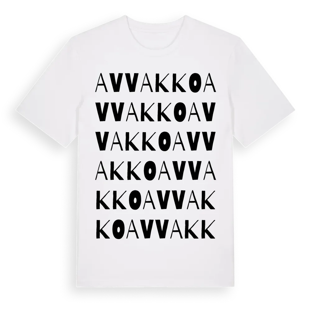 Avvakko ordlek t-shirt är inspirerad av byn Avvakko i Norrbottens län, Sverige. Tröjan är designad för dig som har en speciell koppling till platsen – oavsett om du bor här, har rötterna här eller bara älskar Avvakko.