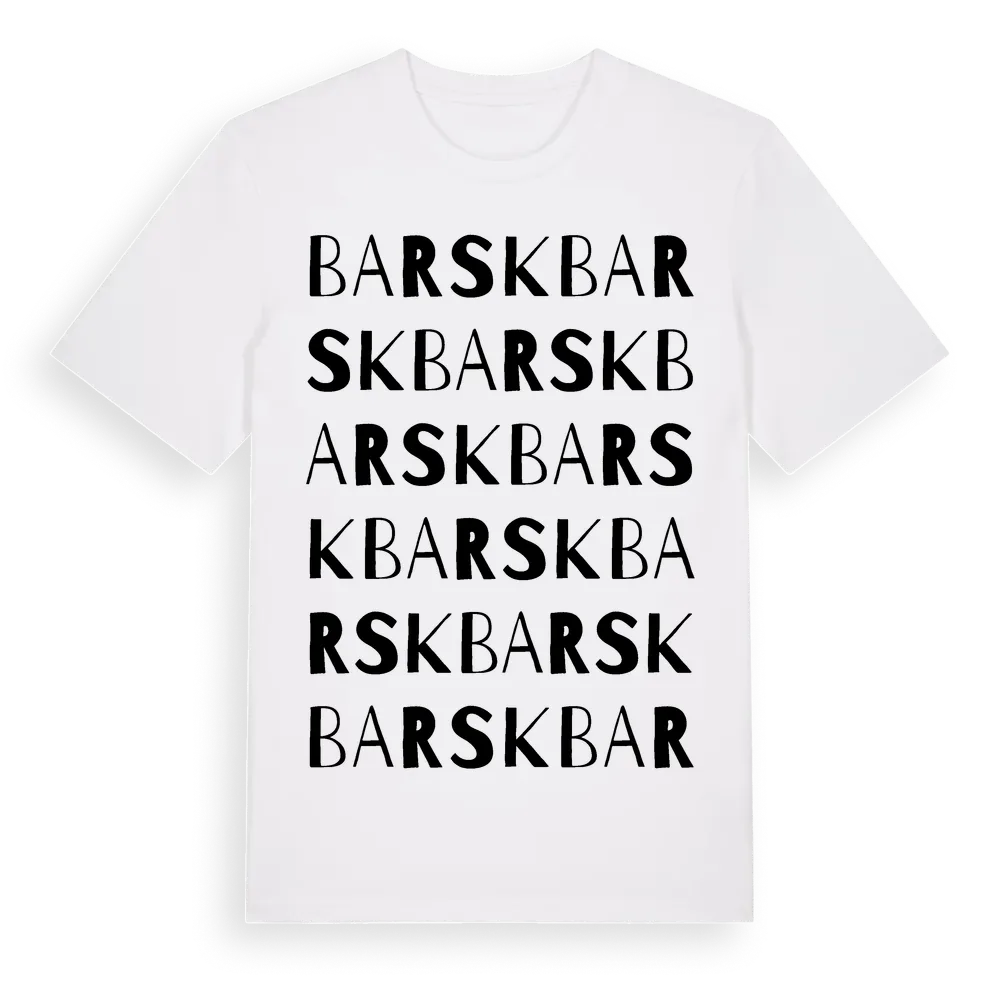 Barsk ordlek t-shirt är inspirerad av byn Barsk i Norrbottens län, Sverige. Tröjan är designad för dig som har en speciell koppling till platsen – oavsett om du bor här, har rötterna här eller bara älskar Barsk.