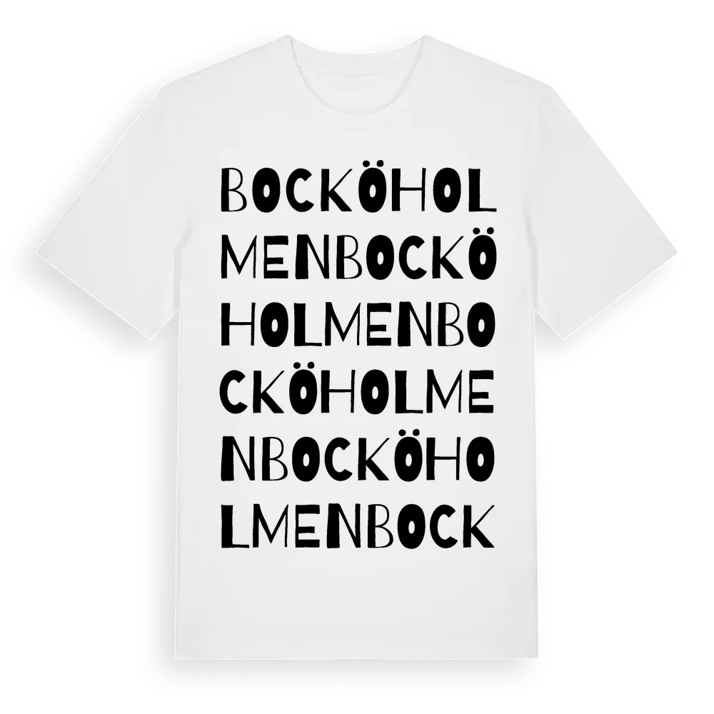 Bocköholmen ordlek t-shirt är inspirerad av Bocköholmen i Norrbottens län, Sverige. Tröjan är designad för dig som har en speciell koppling till platsen – oavsett om du bor här, har rötterna här eller bara älskar Bocköholmen.