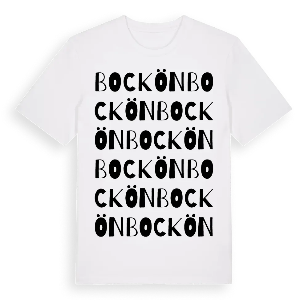 En ordlek byggd på Bocköns namn. Subtilt och klurig – ett motiv som bara de som verkligen känner platsen fullt ut förstår. Premium bomull, unisex – från ön Bockön i Norrbottens län.
