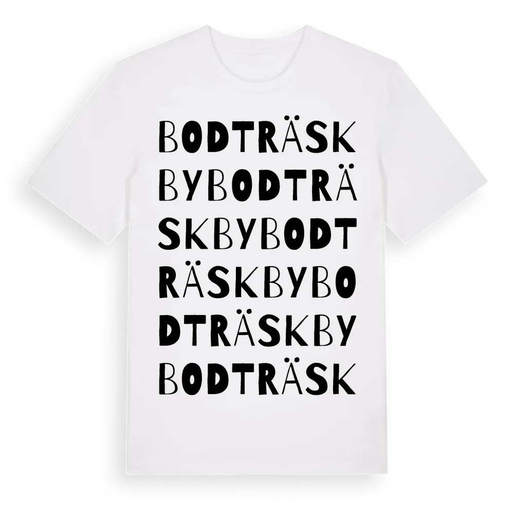 Bodträskby ordlek t-shirt är inspirerad av byn Bodträskby i Norrbottens län, Sverige. Tröjan är designad för dig som har en speciell koppling till platsen – oavsett om du bor här, har rötterna här eller bara älskar Bodträskby.