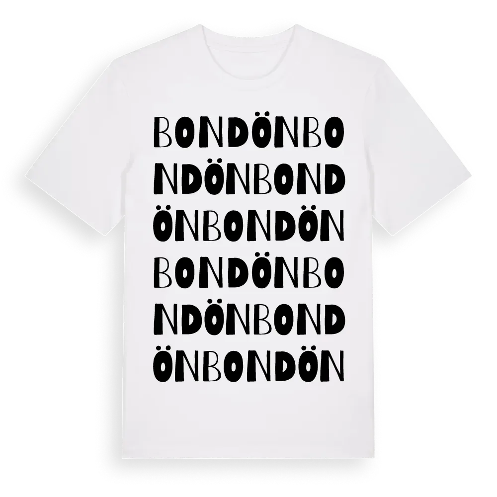 En ordlek byggd på Bondöns namn. Subtilt och klurig – ett motiv som bara de som verkligen känner platsen fullt ut förstår. Premium bomull, unisex – från Bondön i Norrbottens län.