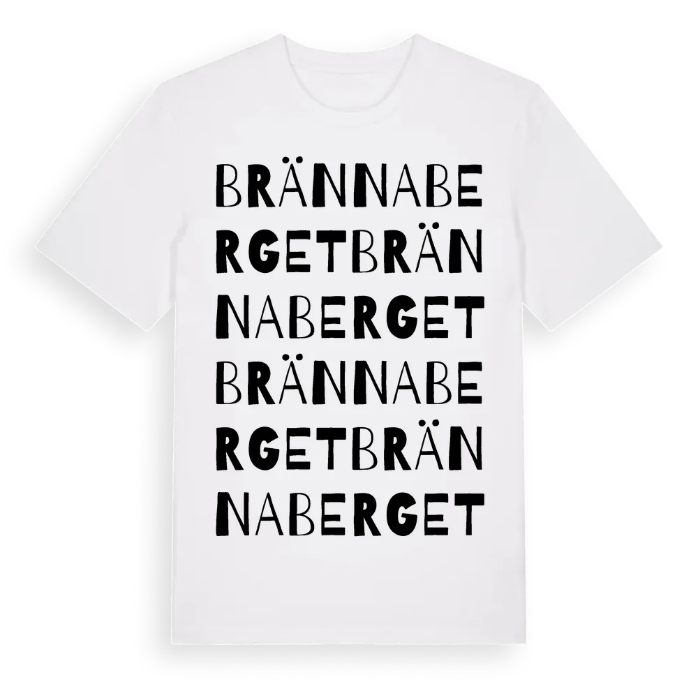 Brännaberget ordlek t-shirt är inspirerad av stadsdelen Brännaberget i Norrbottens län, Sverige. Tröjan är designad för dig som har en speciell koppling till platsen – oavsett om du bor här, har rötterna här eller bara älskar Brännaberget.