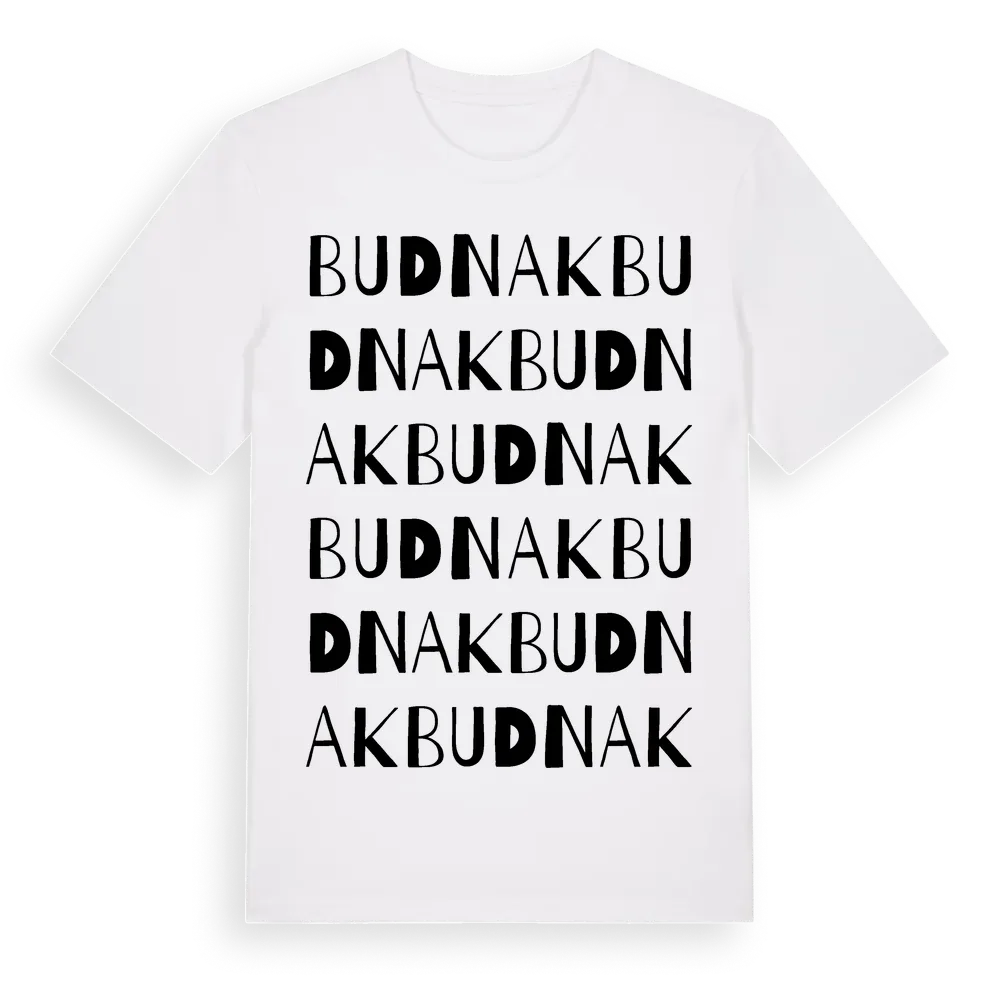 Budnak ordlek t-shirt är inspirerad av Budnak i Norrbottens län, Sverige. Tröjan är designad för dig som har en speciell koppling till platsen – oavsett om du bor här, har rötterna här eller bara älskar Budnak.