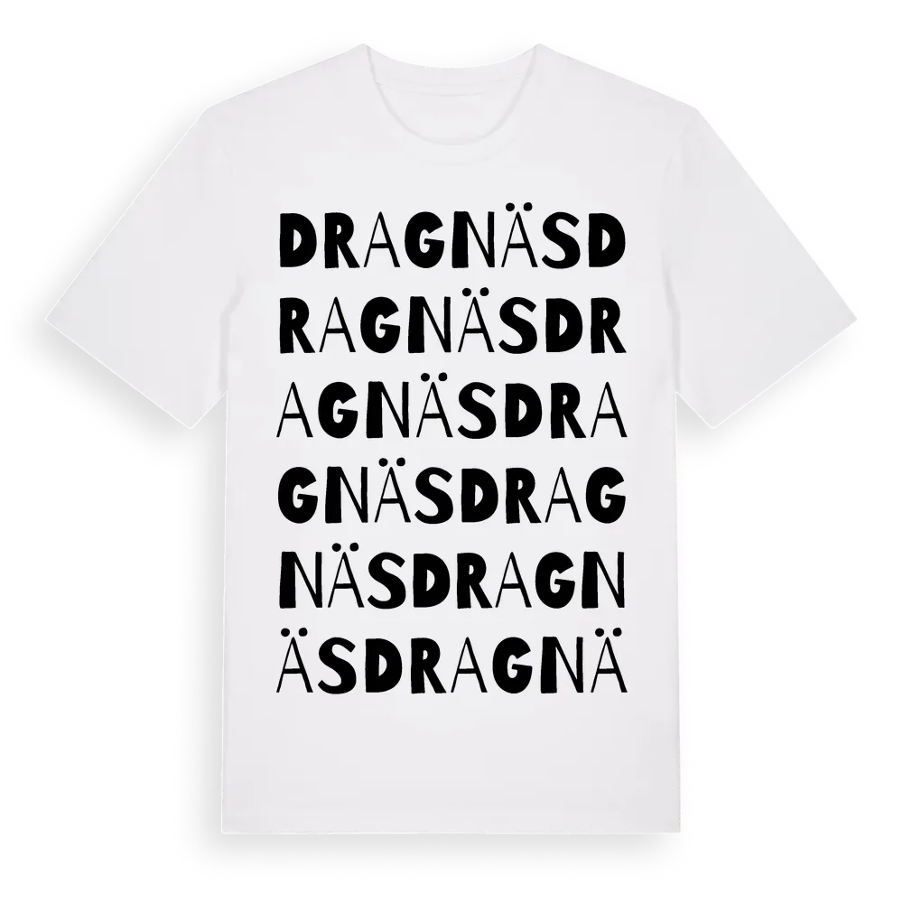 Dragnäs ordlek t-shirt är inspirerad av byn Dragnäs i Norrbottens län, Sverige. Tröjan är designad för dig som har en speciell koppling till platsen – oavsett om du bor här, har rötterna här eller bara älskar Dragnäs.