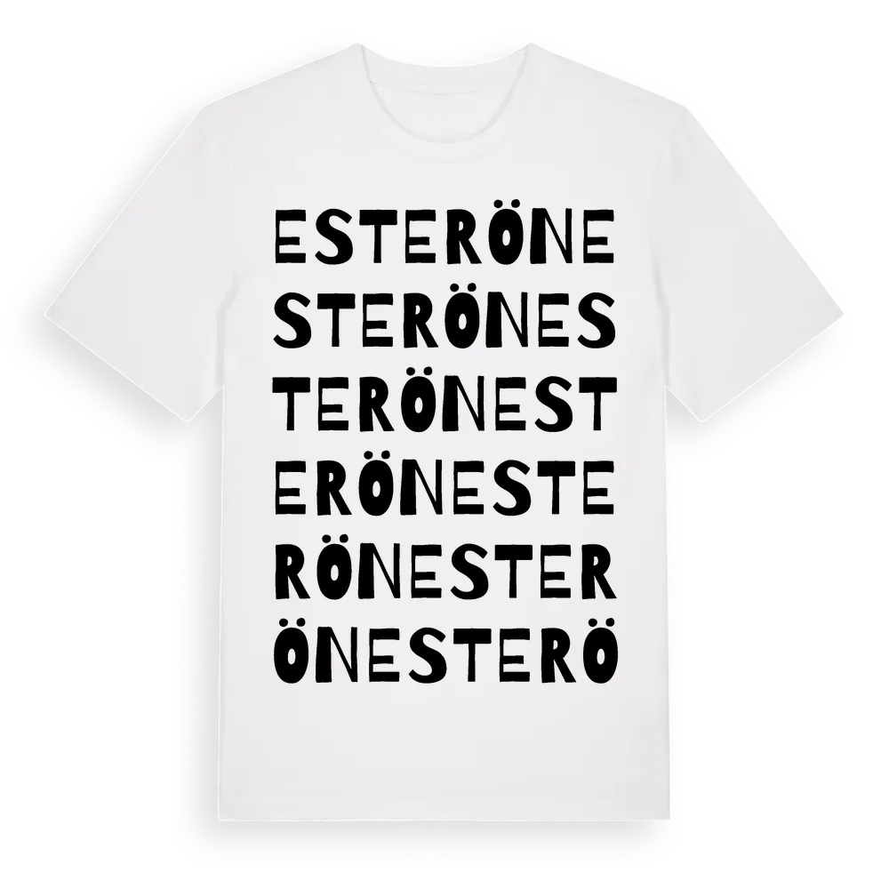 En ordlek byggd på Esteröns namn. Subtilt och klurig – ett motiv som bara de som verkligen känner platsen fullt ut förstår. Premium bomull, unisex – från ön Esterön i Norrbottens län.