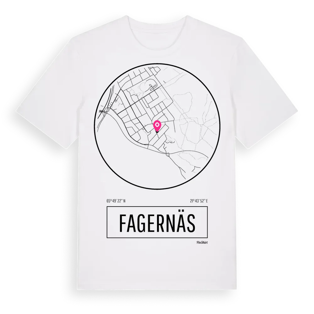 Ett rent, runt tryck med Fagernäss namn. Minimalistiskt och stilrent – perfekt för den som känner platsen utan att skrika det. Premium bomull, unisex – från stadsdelen Fagernäs i Norrbottens län.
