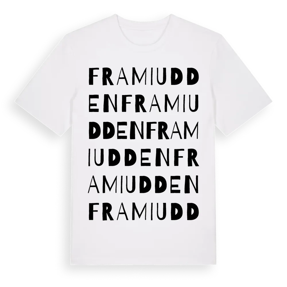 Framiudden ordlek t-shirt är inspirerad av byn Framiudden i Norrbottens län, Sverige. Tröjan är designad för dig som har en speciell koppling till platsen – oavsett om du bor här, har rötterna här eller bara älskar Framiudden.
