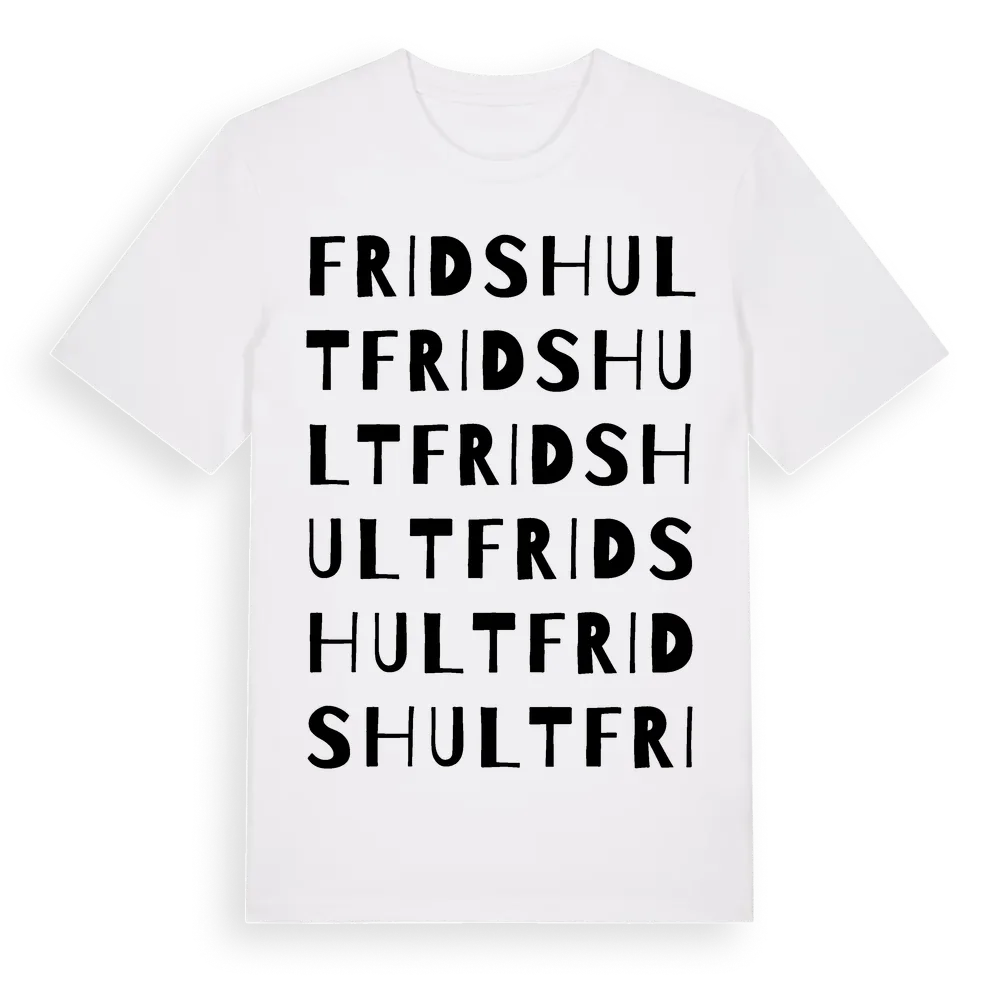 Fridshult ordlek t-shirt är inspirerad av Fridshult i Norrbottens län, Sverige. Tröjan är designad för dig som har en speciell koppling till platsen – oavsett om du bor här, har rötterna här eller bara älskar Fridshult.