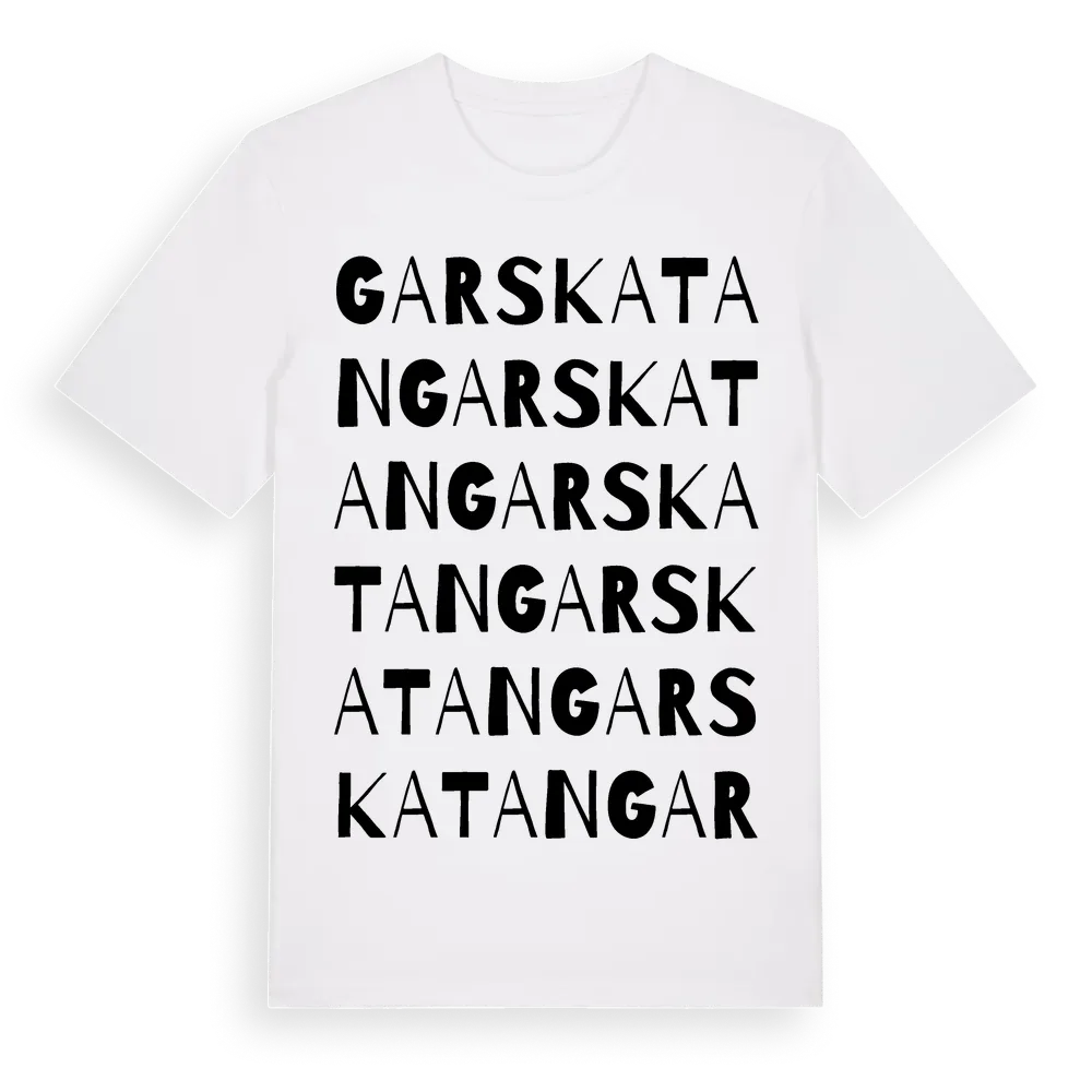 Garskatan ordlek t-shirt är inspirerad av byn Garskatan i Norrbottens län, Sverige. Tröjan är designad för dig som har en speciell koppling till platsen – oavsett om du bor här, har rötterna här eller bara älskar Garskatan.