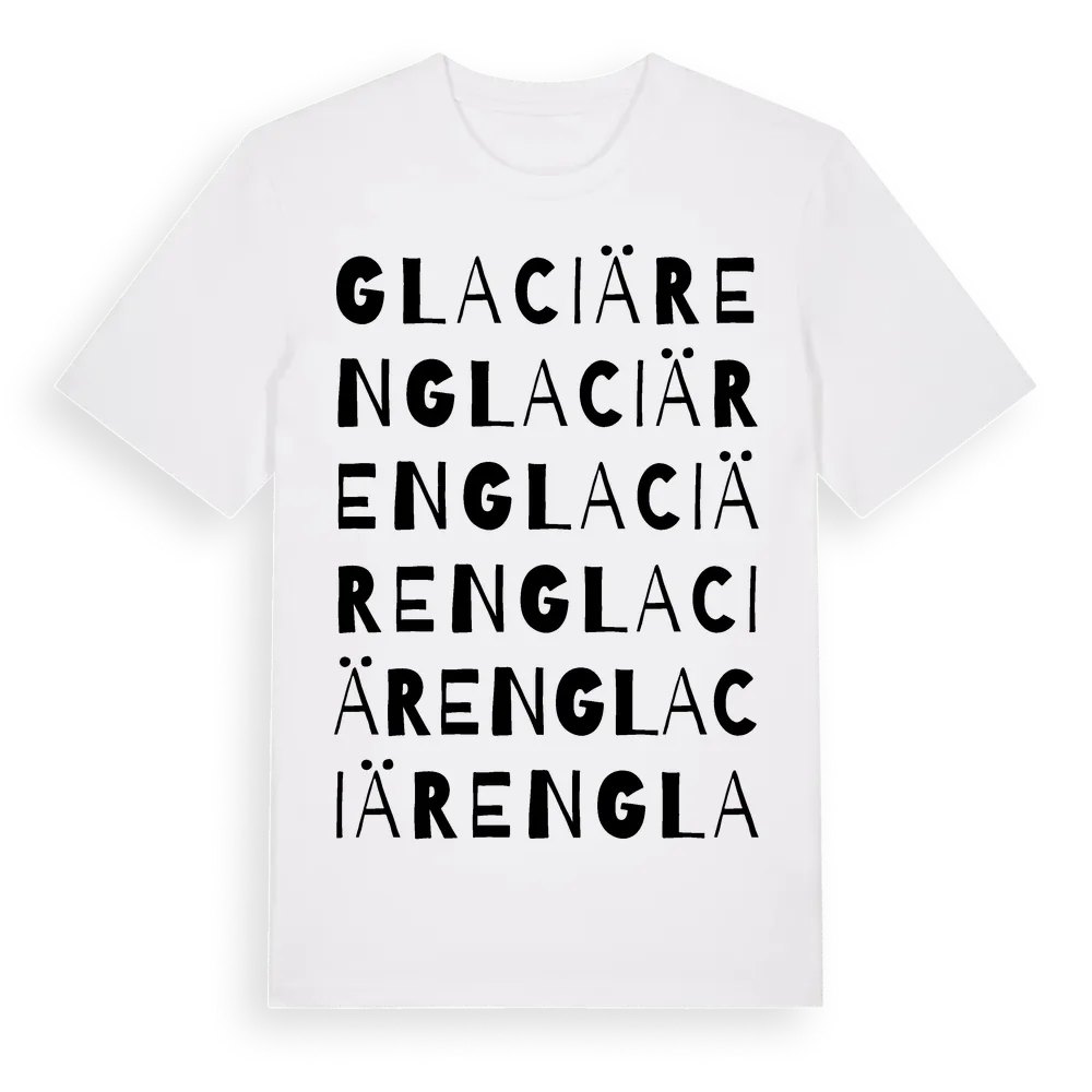 Glaciären ordlek t-shirt är inspirerad av stadsdelen Glaciären i Norrbottens län, Sverige. Tröjan är designad för dig som har en speciell koppling till platsen – oavsett om du bor här, har rötterna här eller bara älskar Glaciären.