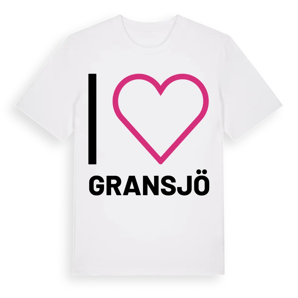 Det klassiska "I ❤ Gransjö"-motivet i stort format som täcker hela bröstet. För dig som vill visa kärleken till Gransjö på riktigt. Premium bomull, unisex – från Gransjö i Norrbottens län.