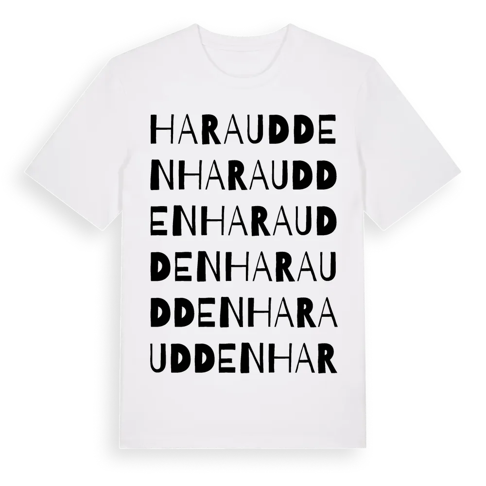 Haraudden ordlek t-shirt är inspirerad av byn Haraudden i Norrbottens län, Sverige. Tröjan är designad för dig som har en speciell koppling till platsen – oavsett om du bor här, har rötterna här eller bara älskar Haraudden.