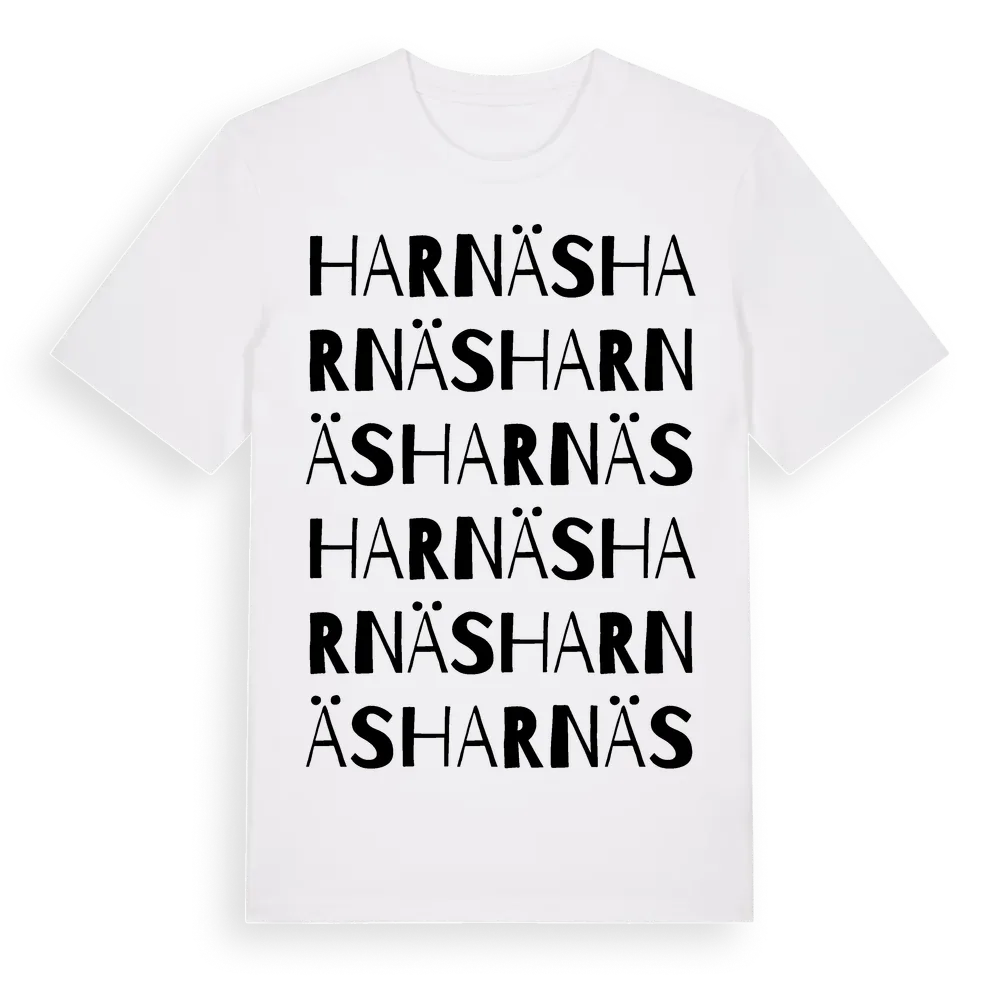 Harnäs ordlek t-shirt är inspirerad av Harnäs i Norrbottens län, Sverige. Tröjan är designad för dig som har en speciell koppling till platsen – oavsett om du bor här, har rötterna här eller bara älskar Harnäs.